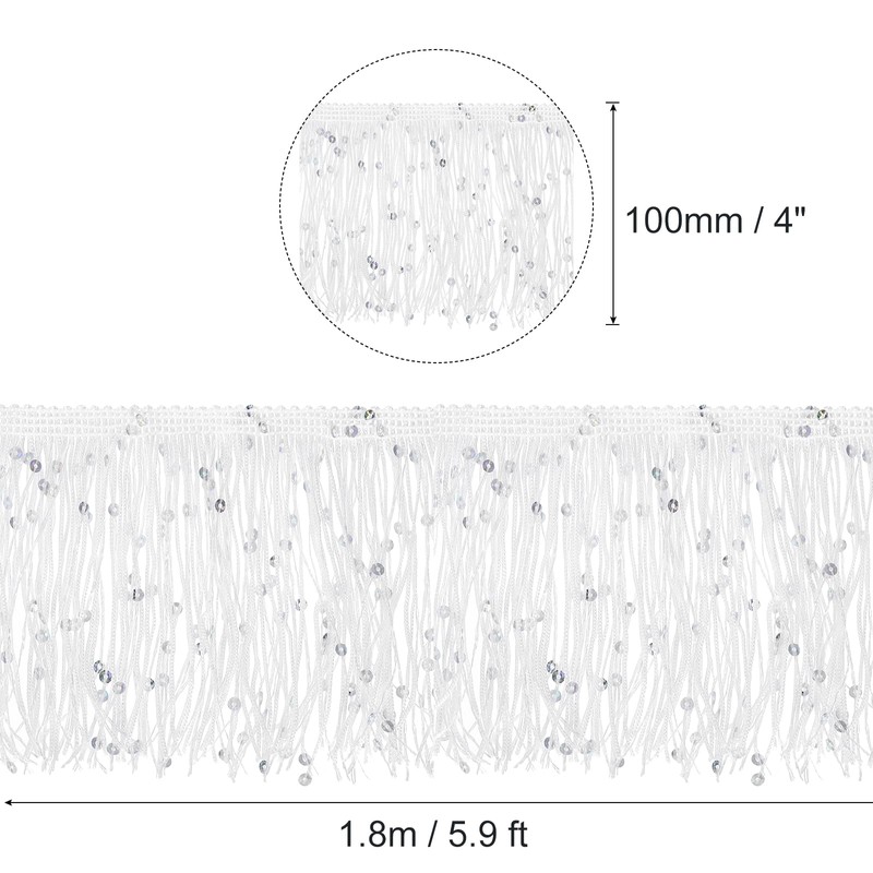 uxcell 2 Yards of 10cm/4" Sequin Fringe Trim Sparkling DIY Fringe Tassel Trim Ribbon for Costume Clothes DIY Sewing Crafts Decoration, (5.9 ft/1.8m) White