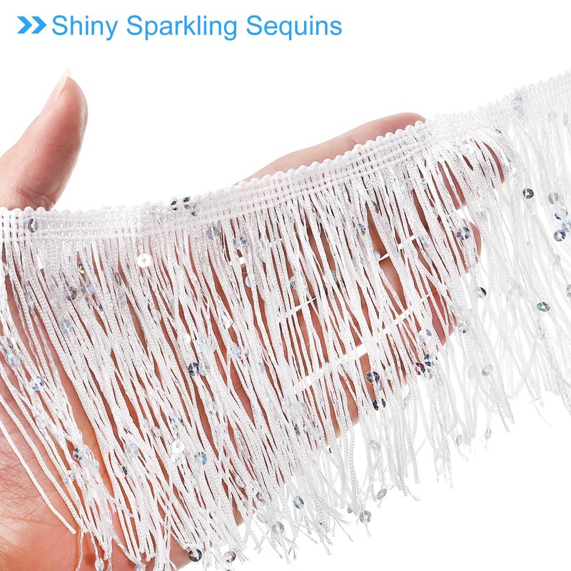 - [Durable Material] - The sparkling sequin fringe trim is made of polyester yarn material, durable and flexible, soft and comfortable to touch, not easy to break or tear, and can be used for a long time without fading.