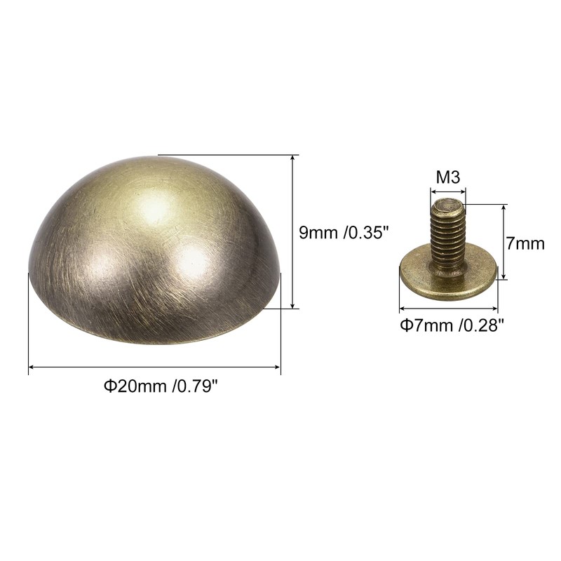 - Rivet Diameter: 20 x 9mm / 0.79" x 0.35"(Base Dia.*H); Screw Thread Size: M3x7mm; Screw Head Dia.: 7mm / 0.28"