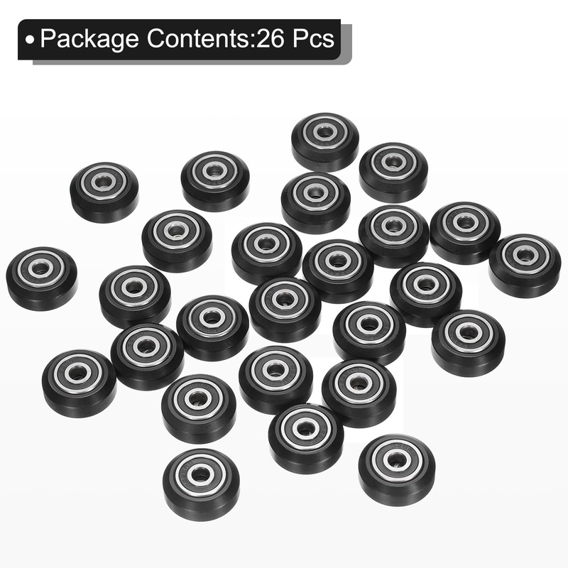 uxcell 26pcs 3D Printer POM Roller Solid High Speed Gantry Wheel V-Slot POM Pulley Wheel with 625RS Double Sealed Bearing 3D Printer for CNC Machine (Black)