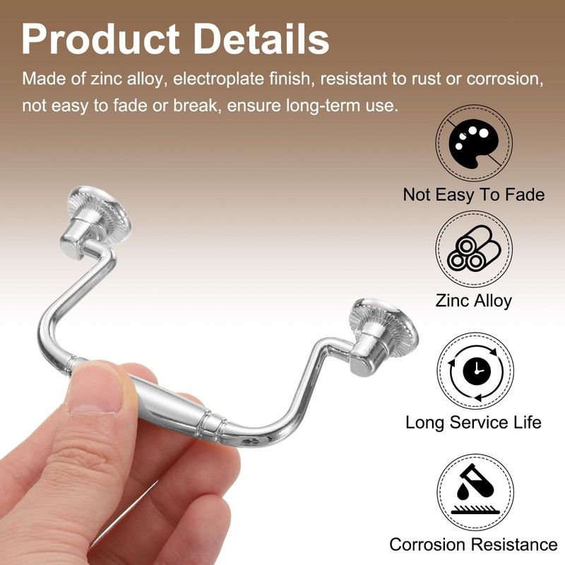 uxcell 2pcs Bail Pull Handle, 4 Inch Bail Drawer Pull Swing Drawer Pulls, 81mm/3.2 Inch Hole Centers, for Wooden Dresser Cupboard Silver