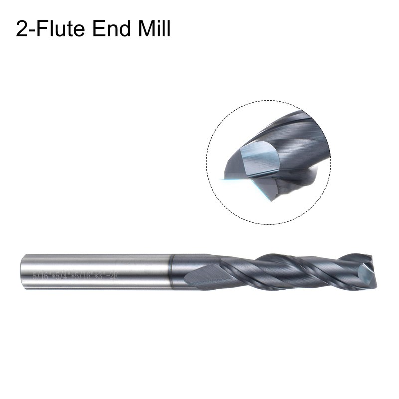 uxcell 2pcs End Mill 5/16" x 1-1/4" 2 Flutes Spiral Helical Groove Tungsten Steel Straight Shank CNC Milling Bits for Aluminum Steel Cutting Metalworking