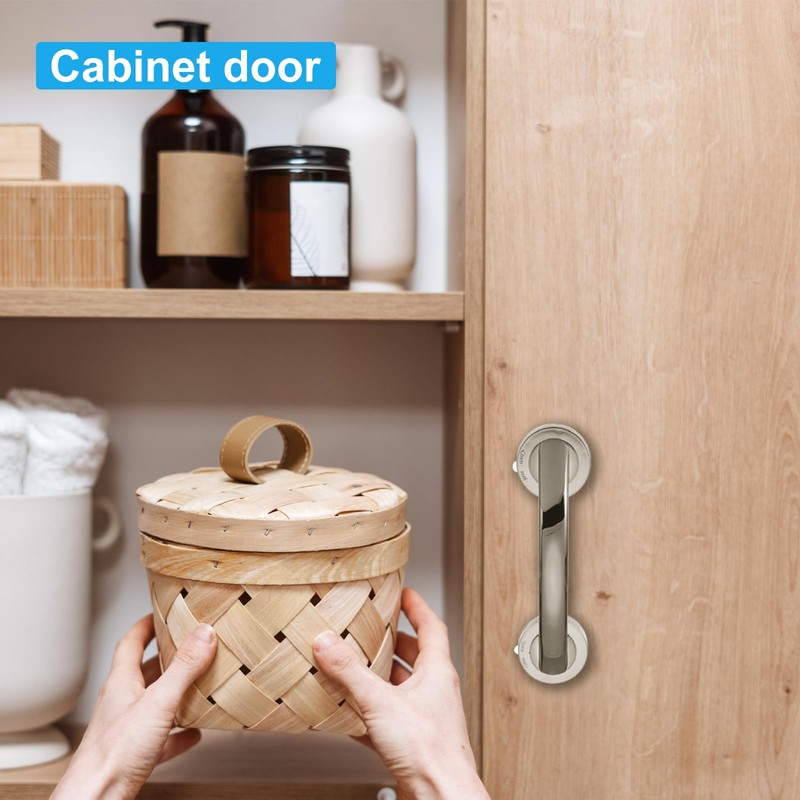 - Features - The Grab Bars are designed for added safety in the bathroom and shower area. Grab bars for bathrooms are suitable for non-porous, flat, smooth surfaces such as tile, glass, acrylic and metal, providing a secure grip for opening and closing doors or windows.