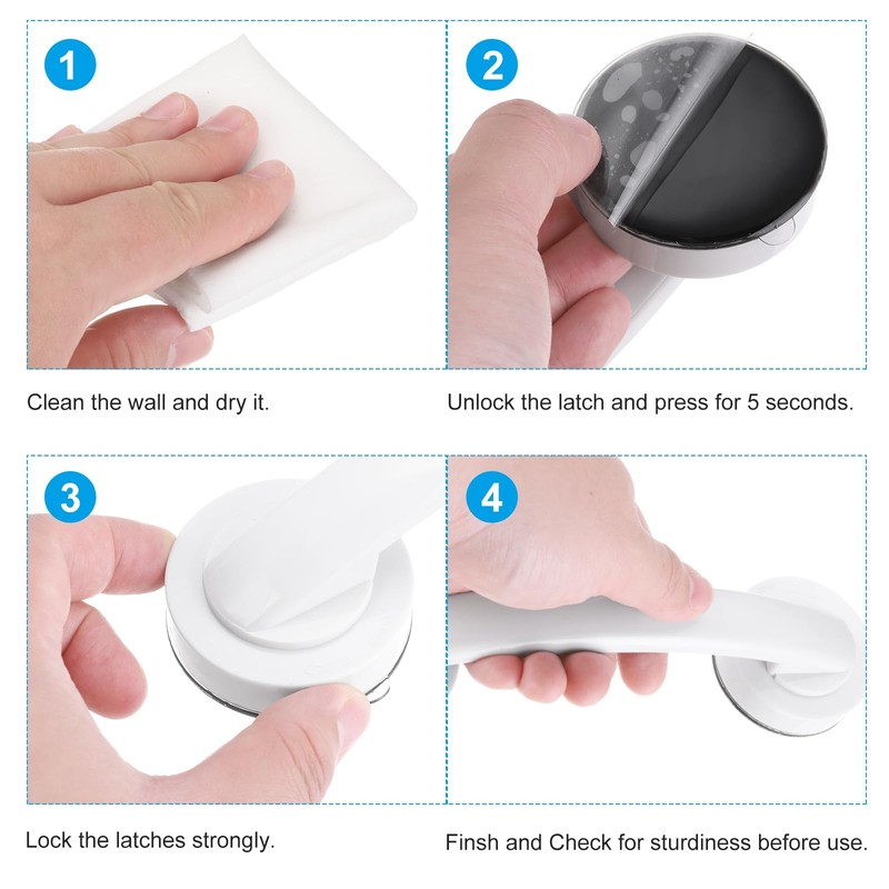 - Robust and Reliable - Made from durable plastic, shower handles for seniors feature two strong suction cups for enhanced stability and offer a comfortable, non-slip grip with a slightly curved design. They provide reliable support when using shower stools or chairs without the worry of slipping