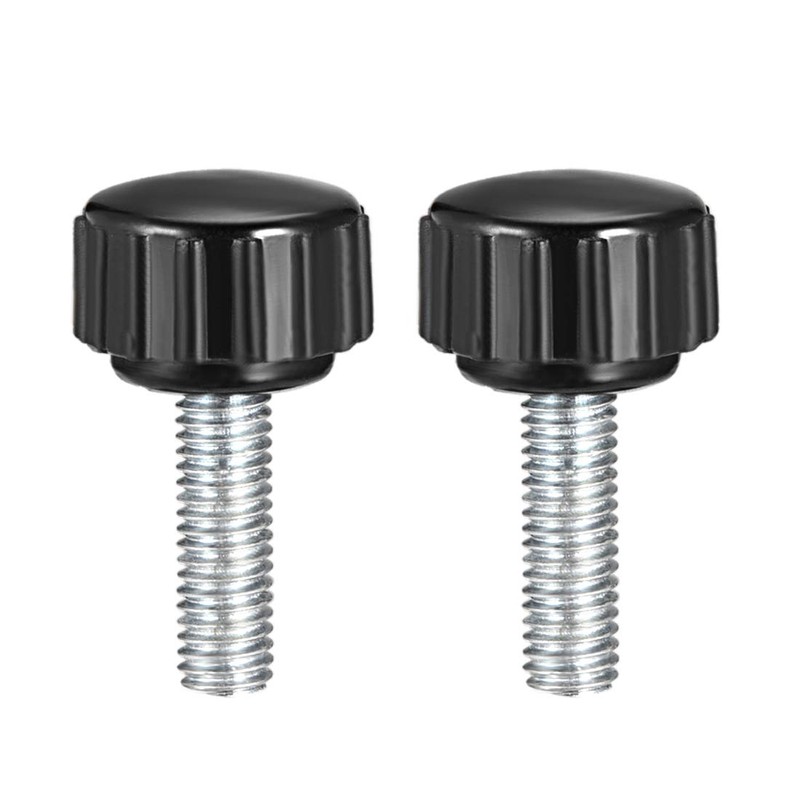 uxcell 2pcs Knurled Clamping Knobs M5 x 20mm Metric Zinc Plated Carbon Steel Male Thread Thumb Screw on Type 16mm Plastic Round Head Threaded Hand Bolt Stud Knobs Black