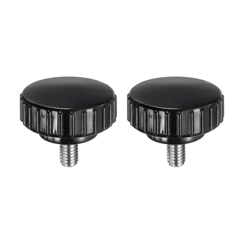 uxcell 2pcs Knurled Clamping Knobs M6 x 10mm Metric 304 Stainless Steel Male Thread Thumb Screw on Type 30mm Plastic Round Head Threaded Hand Bolt Stud Knobs Black