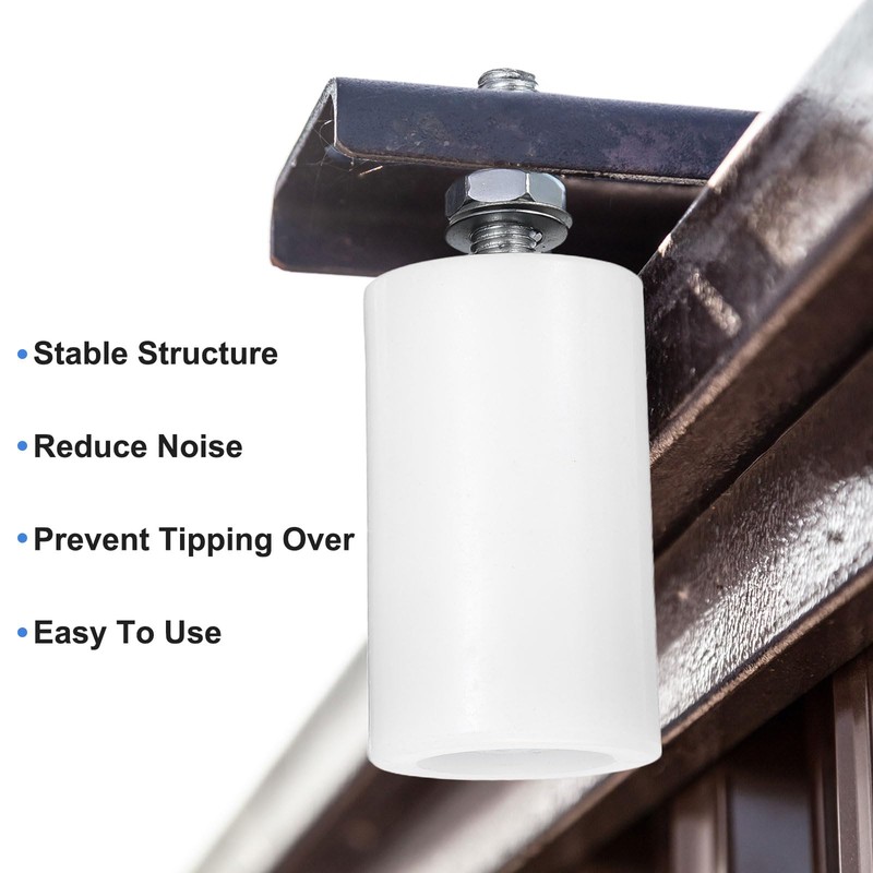Easy to Install - The dual nylon rollers are easy to install and use. The guide rollers for sliding doors can be easily bolted to the bracket or rear post wall. The bracket can be flexibly adjusted to the rollers upward or downward, and ensure that they fit tightly with the door track, reducing swing and misalignment, and achieving stable and smooth movement of the sliding door