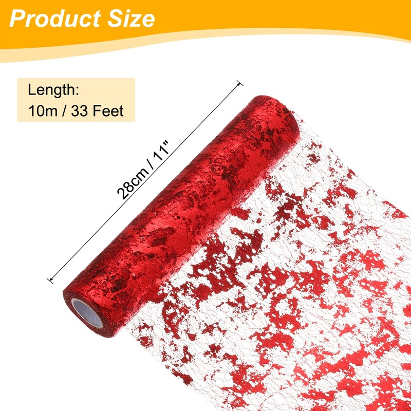 uxcell 30 Feet Table Runner, Sequin Gold Foil Thin Mesh Metallic Table Runner Roll Table Decorations for Event Party, Birthday Party, Weddings, Christmas, New Year, Red