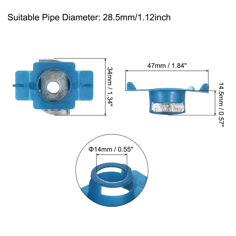 - [Basic Information] The diameter of the nylon strut cone nut hole is 14mm/0.55inch, the suitable pipe diameter is 28.5mm/1.12inch, the total size is 47x34x14.5mm/1.84x1.34x0.57inch (L*W*H), the package includes 30 nylon strut cone nuts, sufficient quantity to meet your needs.