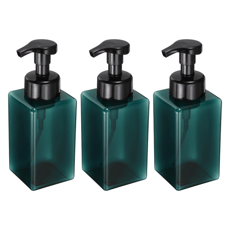 uxcell 3PCS Square Empty Foam Pump Bottle, 450ml Travel Foam Soap Dispenser Empty Refillable Plastic Pump Bottle for Lash Shampoo, Hand Soap, Facial Lotion(5.7", Clear Dark Green)