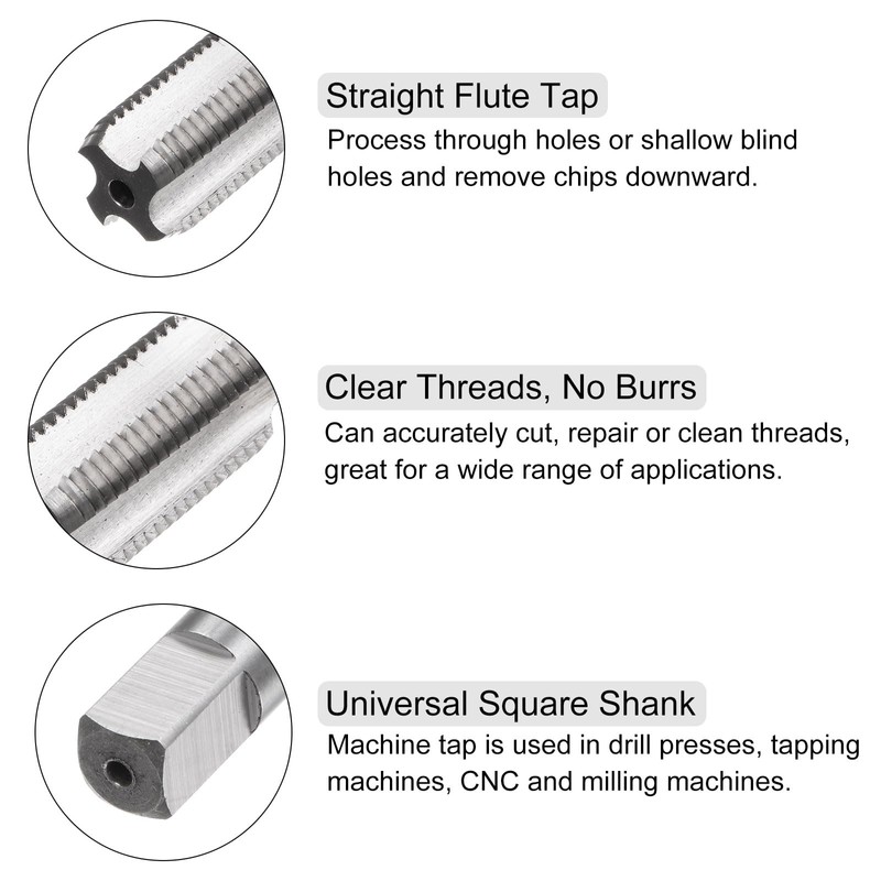 - Widely Used: Accurately cut, repair or clean threads. Straight flute tap process through or shallow blind holes and remove chips downward. Die is suitable for threads on rods, bolts, screws, pipes and shafts, or just remove bolts and threaded rods. Great for most metals, iron, copper, zinc, alloy steel, abrasive steel, stainless steel, etc..