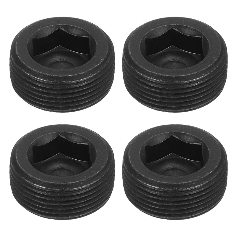 - [SIZE & PACKAGE]: Surface Treatment: Black oxide coating; Thread Size: M27; Hex Width Across Flats: 14mm/0.55"; Length: 12mm/0.47"; Thread Pitch: 1.5mm/0.06"; Package: 4pcs Socket Pipe Plugs