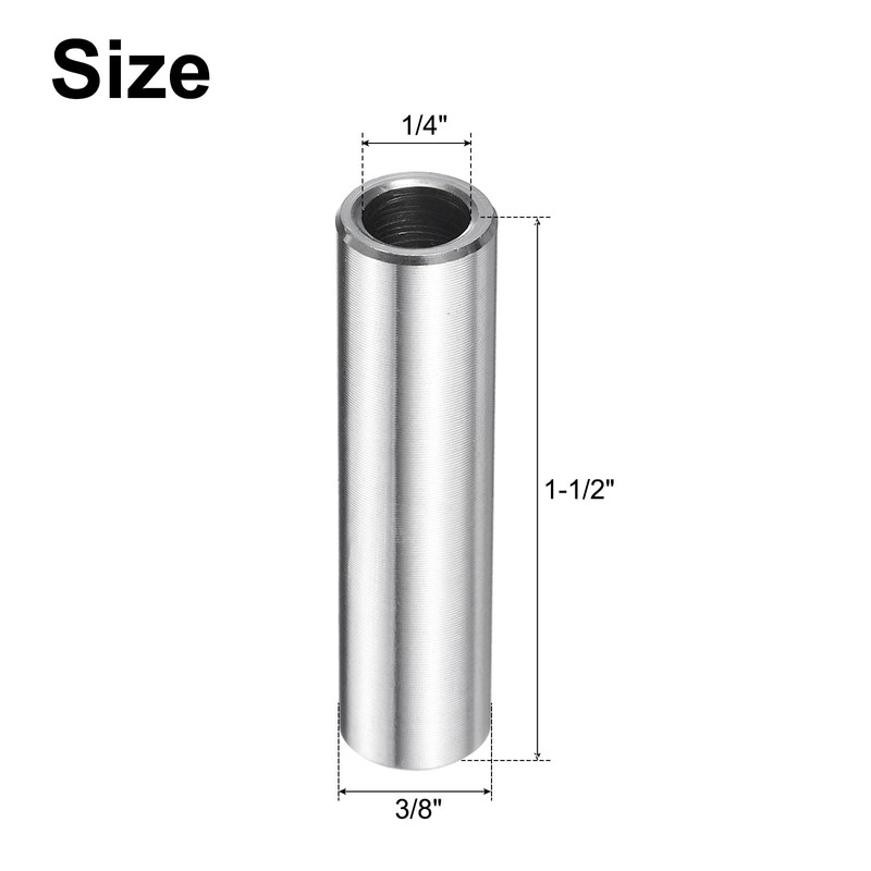 - Size: 1/4" inside diameter steel spacer, 3/8" outside diameter, 1-1/2" Length. Fits 1/4" screws bolts and rod bars.