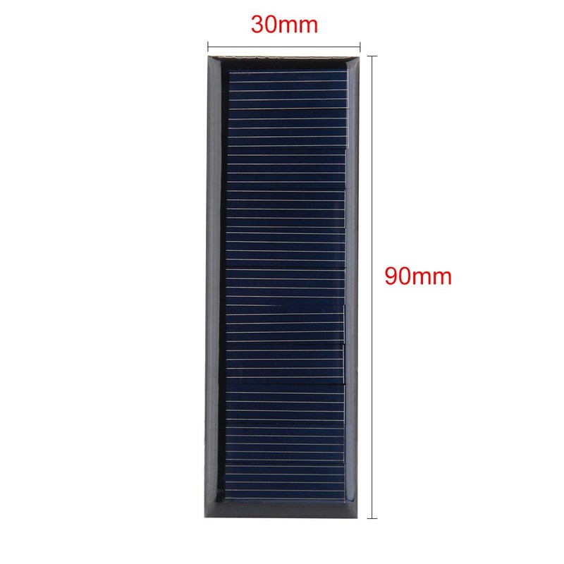 Descriptions: Provide you with high conversion rate and incredibly efficient output. Excellent performance even under the weak sunlight. Unique processing to make the panel durable enough to anti the snow, and convenient enough to set. Unique technology to avoid water freezing and deformation within the frame. Portable, compact and stylish size with solid attractive casing. Application: to charge cell , for home lighting and different kinds of low- power appliances, for science projects, for solar powered water pump, small solar power system, etc. Specifications: Product Name: Solar Panel Material: Polycrystallinesilicon Rated Voltage: 5.5V Rated Current: 60mA Size: 90mm x 30mm/3.51inchx1.17inch(L*W) Thickness: 2.9mm/0.11 inch Weight: 49g