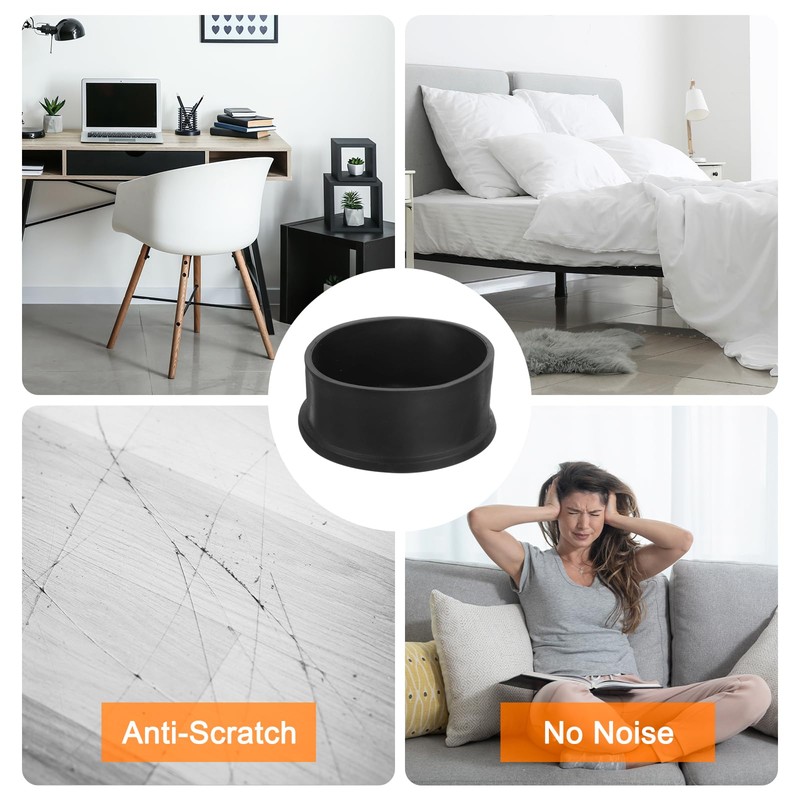 - What You Will Get: 5 pcs black round chair leg caps, enough to meet your needs. These chair leg caps are designed for chair legs with an Outer diameter of 80mm (3-1/7 Inch), please measure the bottom of the furniture legs and choose the appropriate size before purchasing.