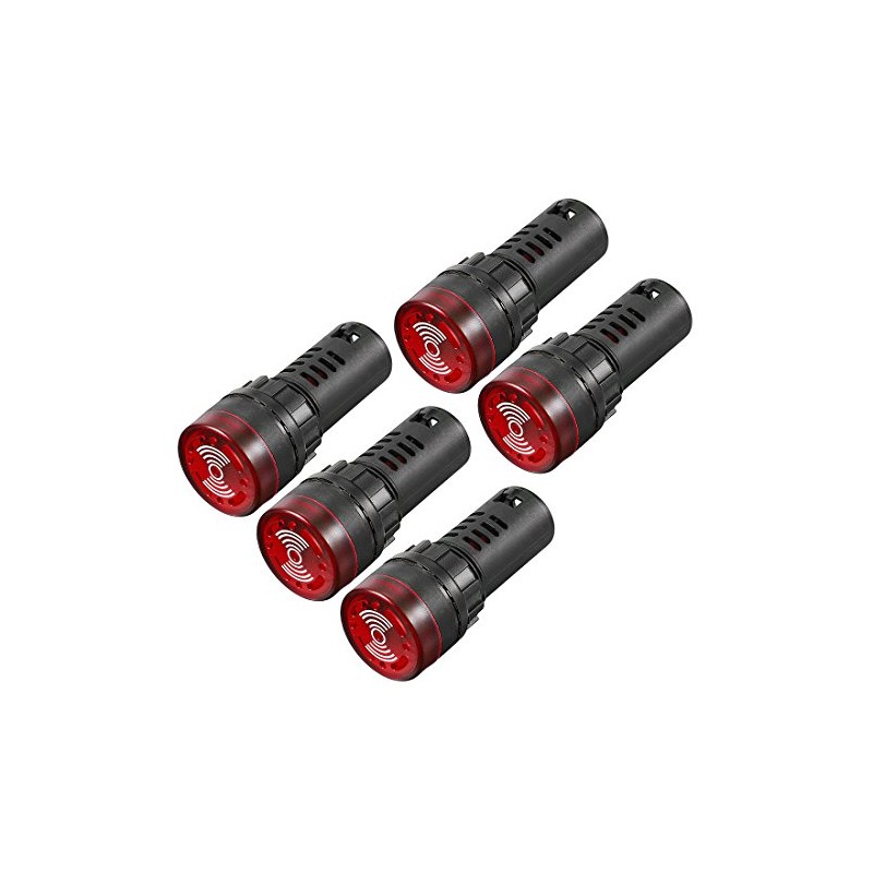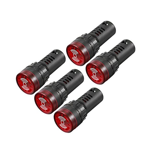 uxcell 5Pcs Red Indicator Light with Buzzer AC/DC 24V, 22mm Panel Mount Flashing Alarm, for Electrical Control Panel, HVAC, DIY Projects