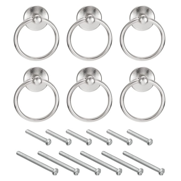 uxcell 6Pcs Round Ring Pulls, Dresser Knobs Silver Circle Drawer Handles Single Hole for Cabinet Cupboard Wardrobe