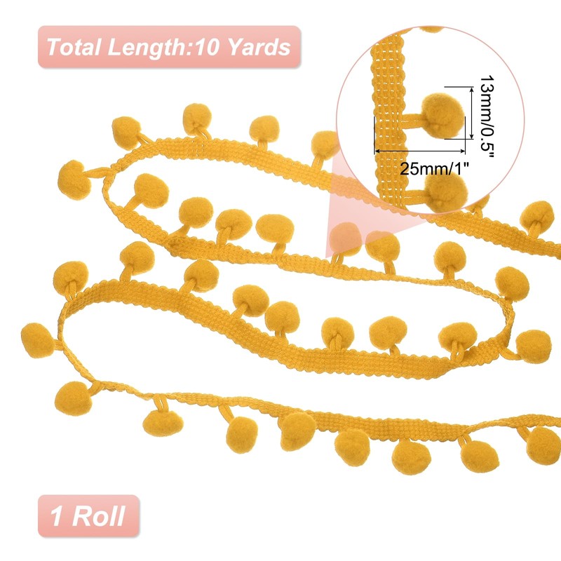 uxcell 9 Yards Pom Pom Trim Ribbon, 1" Wide Yellow Pom Pom Ball Fringe Trim Sewing Fringe Fabric Trim Ribbon for DIY Crafts Curtain Clothes Pillow Home Decoration