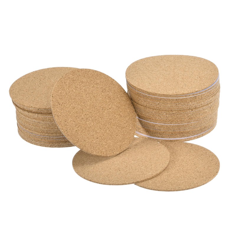 - Product Name: Round Coasters; Material: Cork; Color: Wood; Outer Diameter: 95mm / 3.74"