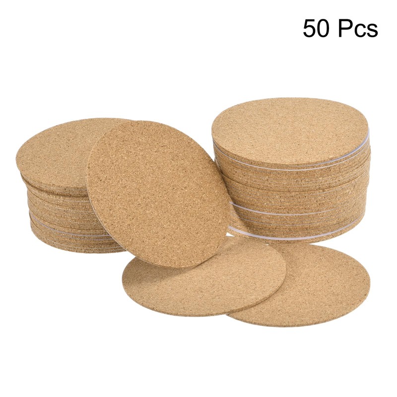 uxcell 95mm(3.74") Round Coasters 2mm Thick Cork Cup Mat Self-Adhesive Pad 50pcs