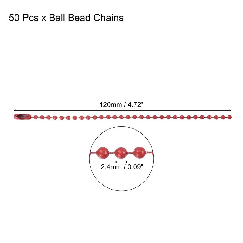 - Adjustable Bead Chain is the following sizes: 2.4mm x 120mm/0.09" x 4.72"(Diameter x Length); Material: Metal; Color: Red; Package included: 50pcs x Ball Bead Chain;