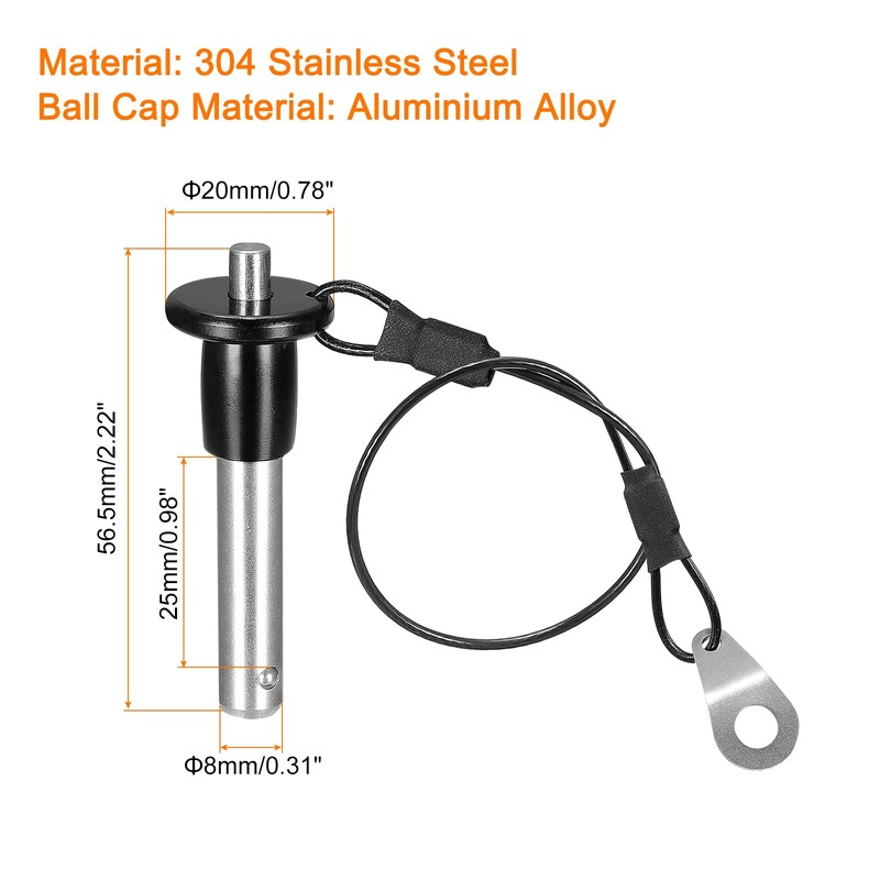 uxcell Ball Lock Pin 304 Stainless Steel Grip Push Button Lock Quick Release Pin with 24cm Wire 8mm-25mm
