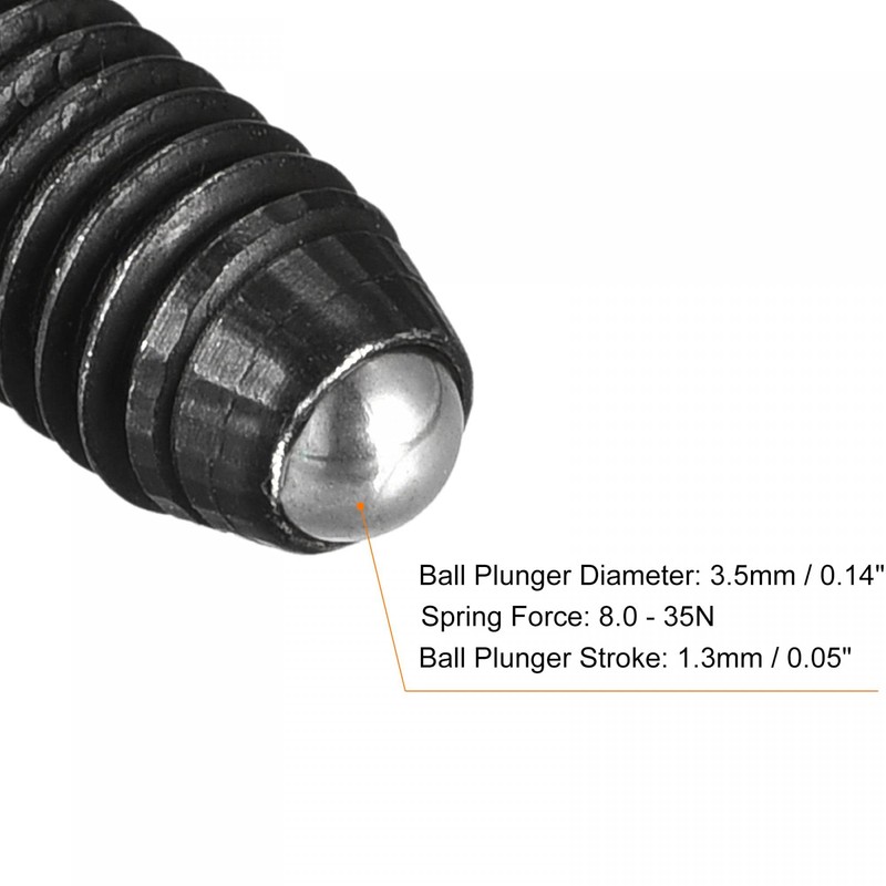- Screw Size: M6 x 8mm; Spring Force: 8.0 - 35N; Ball Plunger Stroke: 1.3 mm