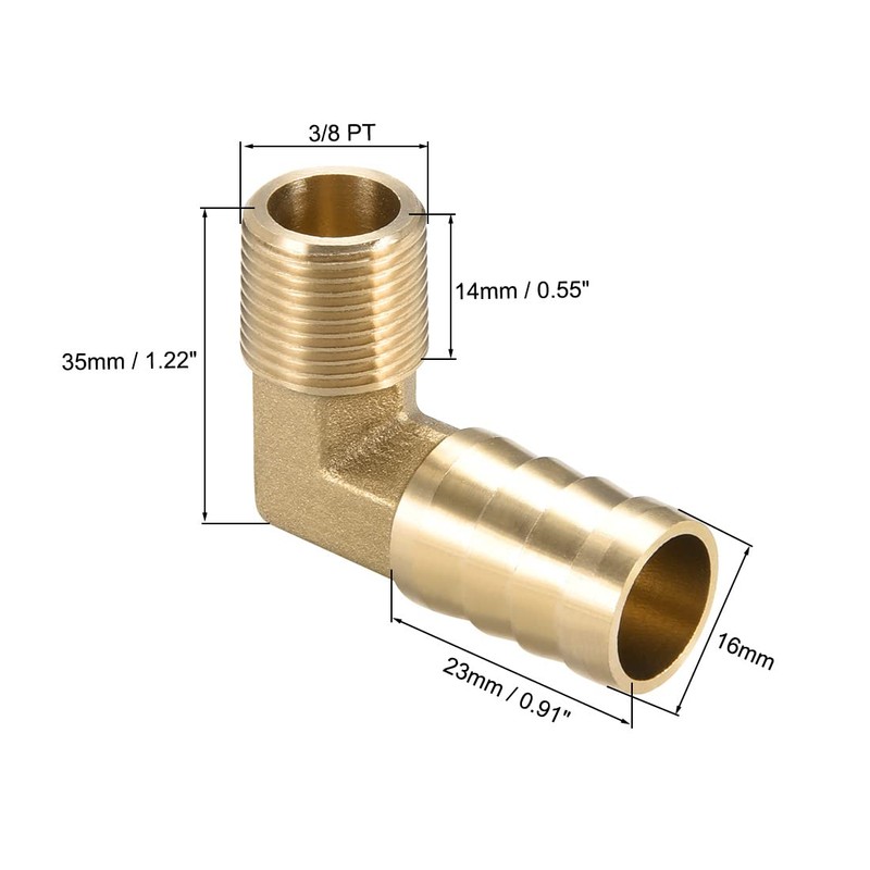 uxcell Barb Hose Fitting 16mm Barb-3/8 PT Male 90 Degree Elbow Brass Pipe Adapter Connector