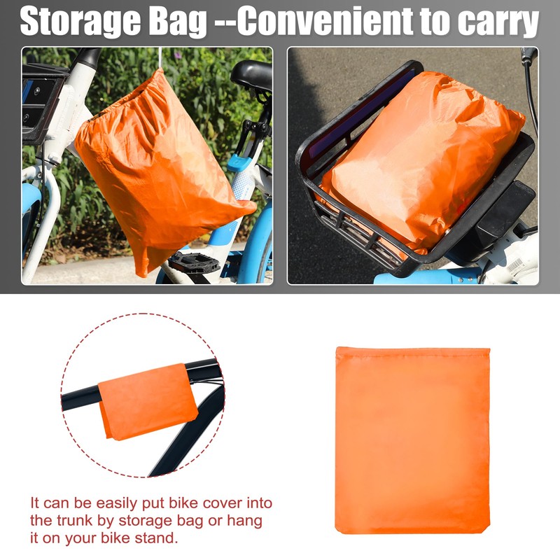 - Free Storage Bag included - 1 x Bike Cover, 1 x Free Bike Storage Bag. It can be tightened on the bike frame or placed inside the basket neatly. Do not occupy space and keeps the bike cover clean and best choice for portable bike cover.