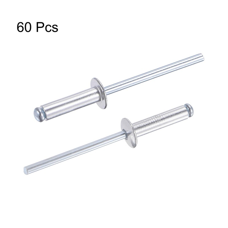 uxcell Blind Rivet Diameter 4mm Grip Length 16mm Aluminum Pull Rivet Core Decoration Rivet Silver Tone 60pcs