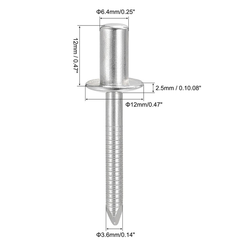Rivet Grip Size: 0.25 x 0.57 inches (6.4 x 12 mm) (D*L)