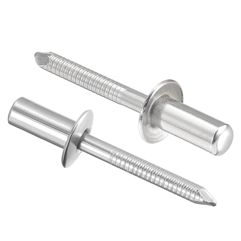 3. Open End Blind Rivets with Breakpull Mandrel, Long Rivet Body, Flat Round Head