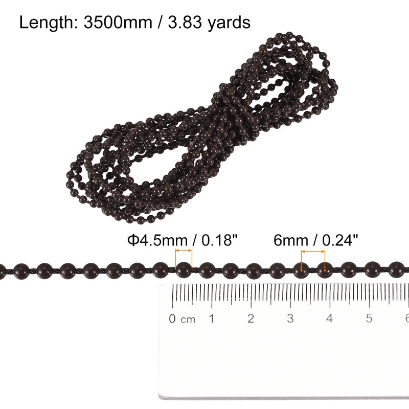 - [Roller Beaded Cord] - Length: 350cm/3.83 yards; Bead Diameter: 4.5mm/0.18"; Two Bead Center to Center Spacing: 6mm/0.24". Please measure your shutter chain length and bead size before ordering, or it will not match your pulley teeth and it is recommended to trim the chain length according to the old chain length.