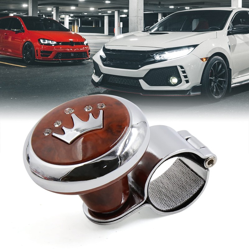 uxcell Brown Crown Pattern Design Steering Wheel Knob Power Handle for Auto Car