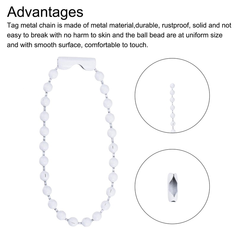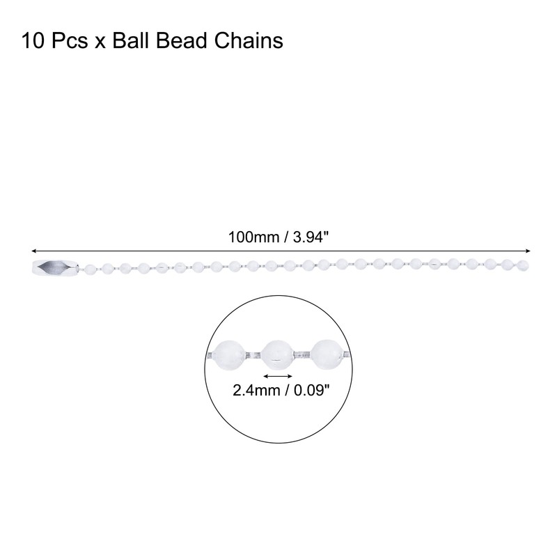 - 調節可能なビーズチェーンのサイズ:2.4 mm x 100 mm(D*L)、材質: 金属、カラー:ホワイト、パッケージ内容:10個 x ボールビーズチェーン
