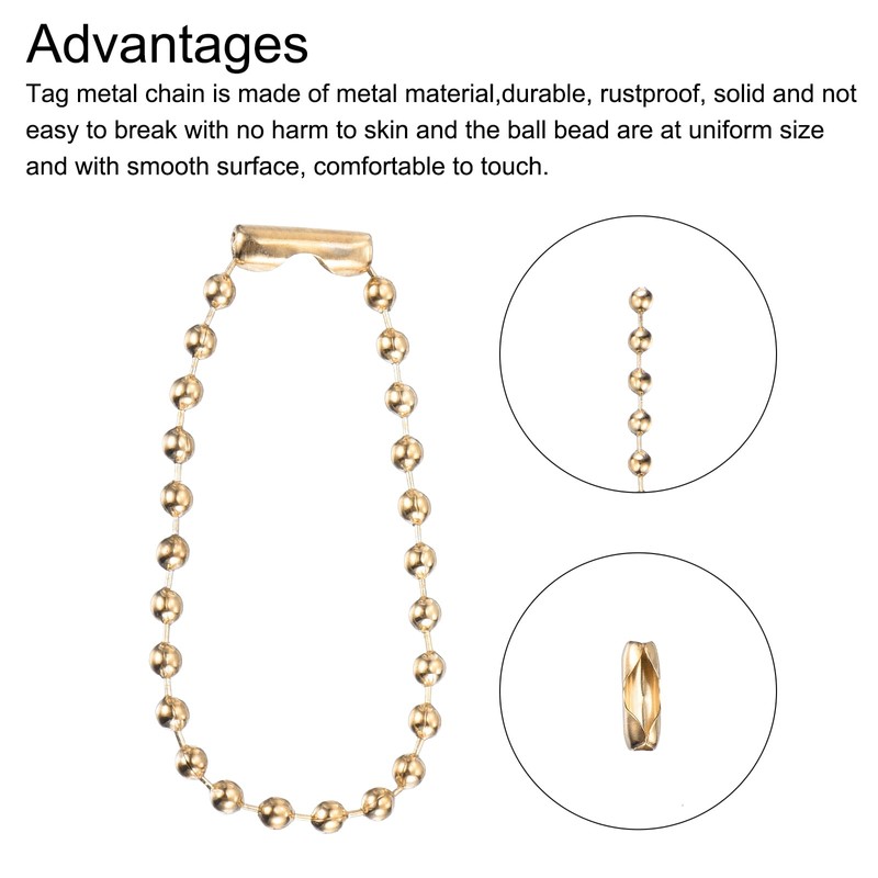 - 調節可能なビーズチェーンのサイズ:2.4 mm x 100 mm(D*L)、材質: 金属、カラー:金色、パッケージ内容:20個 x ボールビーズチェーン