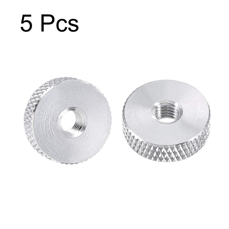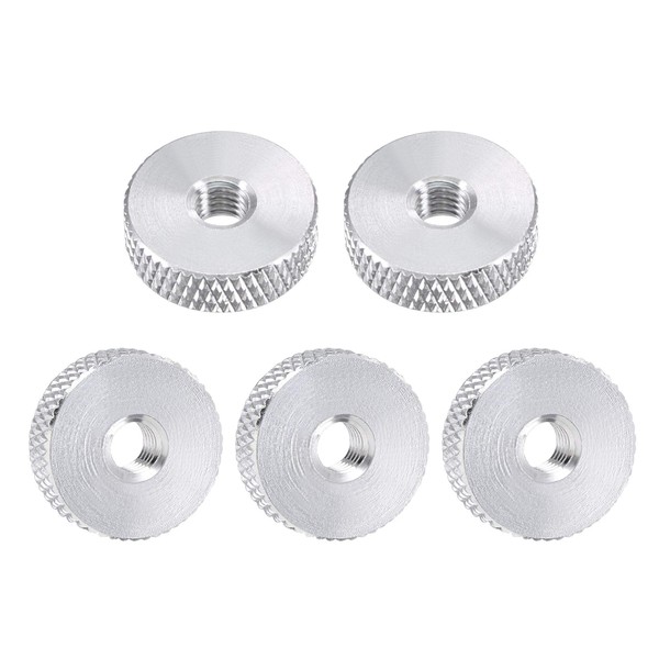 uxcell Flat Knurled Nut - M5 x 16mm x 5mm Thumb Nuts Lock Adjusting Nuts Aluminum Alloy Silver 5Pcs