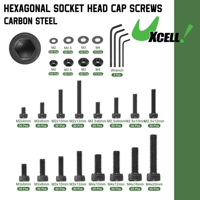 - [5]: QUANTITY INCLUDED - 1305PCS x M2x4/6/10/14,M2.5x6/8/10/12,M3x6/8/10/12,M4x10/12/16/20 Kits Hex Socket Head Bolt