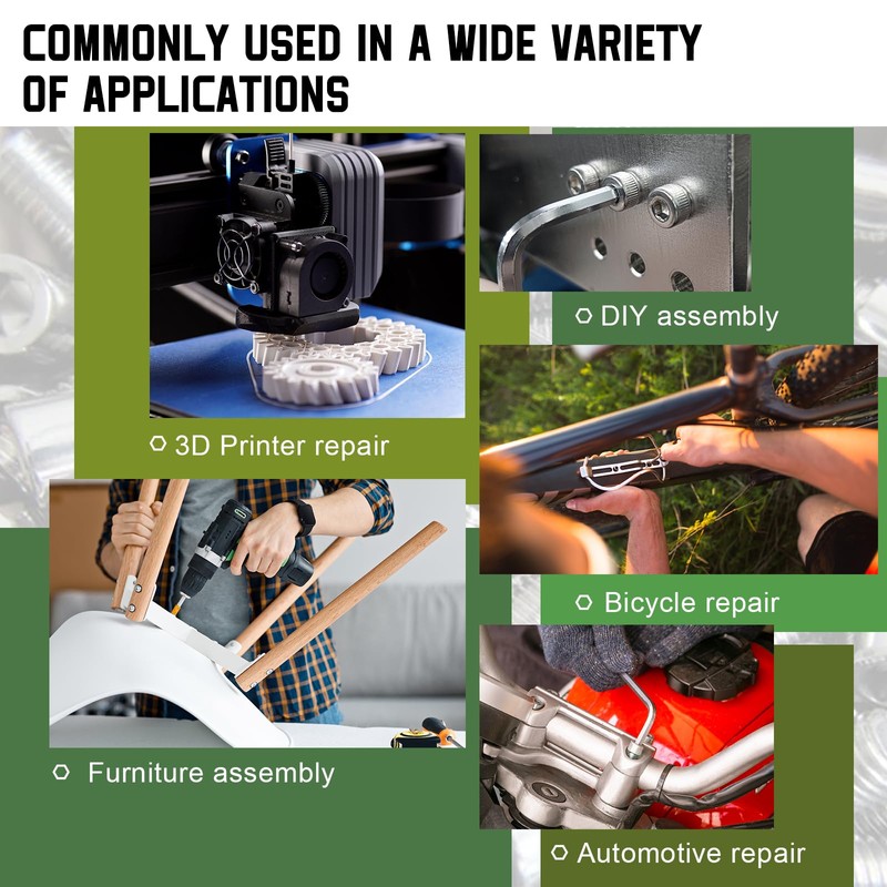 - [1]: APPLY TO - Hexagon socket screws are essential for assembling machines, equipment and tools, maintaining their structural integrity. They are suitable for indoor and outdoor use, such as automobile, bicycle, communication equipment and ship assembly.