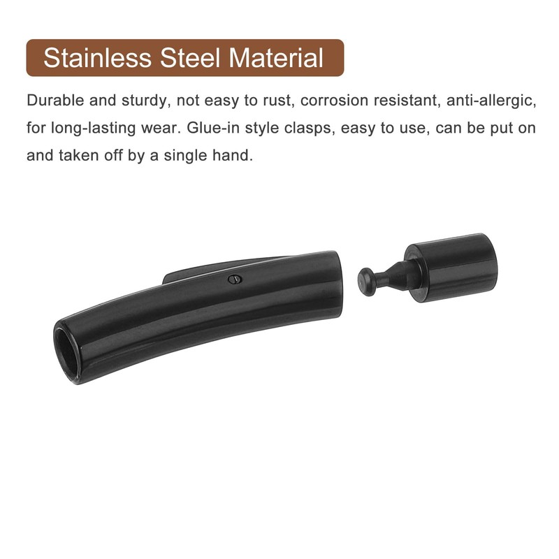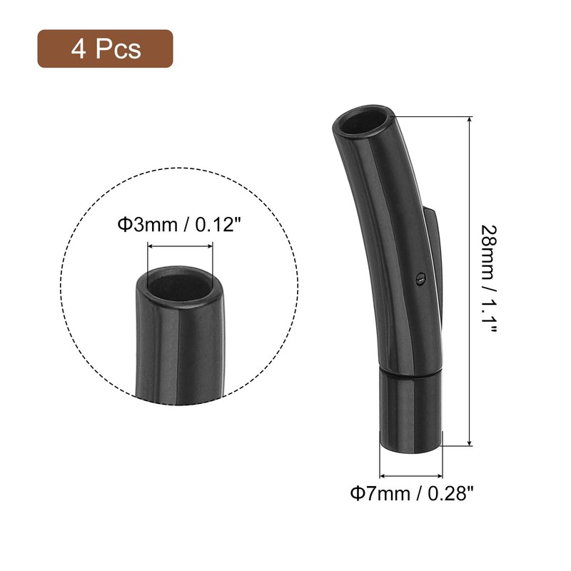 uxcell Leather Cord End Clasp, 4Pcs 3mm Hole Column Clasps Connectors, Stainless Steel Clasps Closures Leather Cord Buckle for Making DIY Supplies Crafts, Black(7mm)