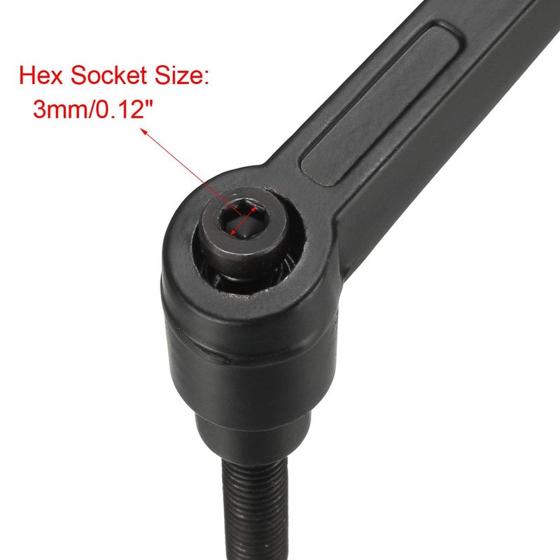 - Standard Thread Size: M6 (1mm Pitch); Bolt Length: 25mm / 0.98"; Lever Length: 45mm / 1.77"; Hex Socket Size: 3mm / 0.12"; Main Color: Matte Black