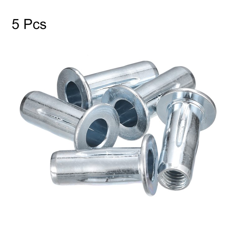 uxcell M8 Multi-Grip Rivet Nuts, 5pcs Pre-Bulbed Shank Flat Head Threaded Insert Nut Carbon Steel Plus Nuts for Construction Industrial