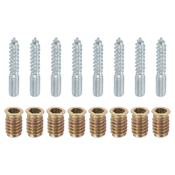 uxcell M8x50mm Hanger Bolts, 8pcs 31mm Wood Dowel Screw Self-Tapping Screw with 8pcs M8x20mm Threaded Insert Nuts Interface Hex Socket Drive, for Joint Furniture Legs
