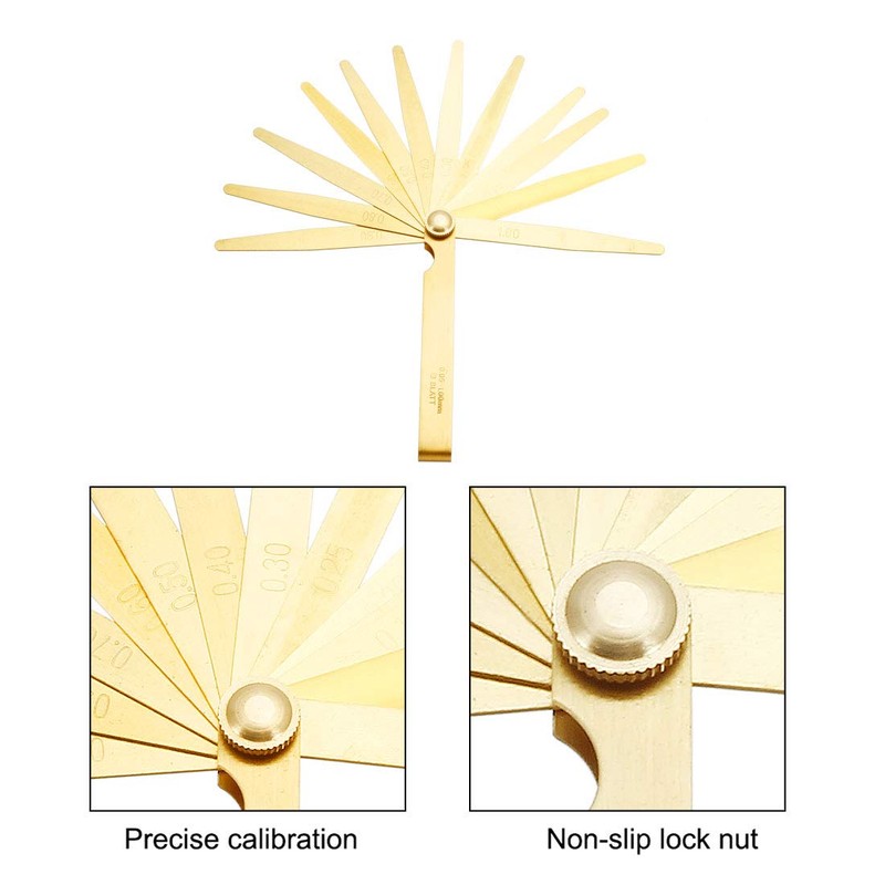 uxcell Metric Thickness Feeler Gauge 0.05-1mm 13 Blades Brass Measuring Tool for Width Gap