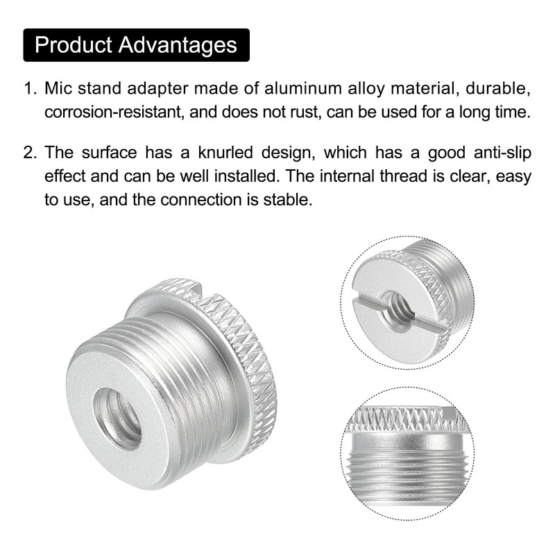 • Microphone stand adapter made of aluminum alloy material, durable, anti-corrosion, rust and can be used for a long time