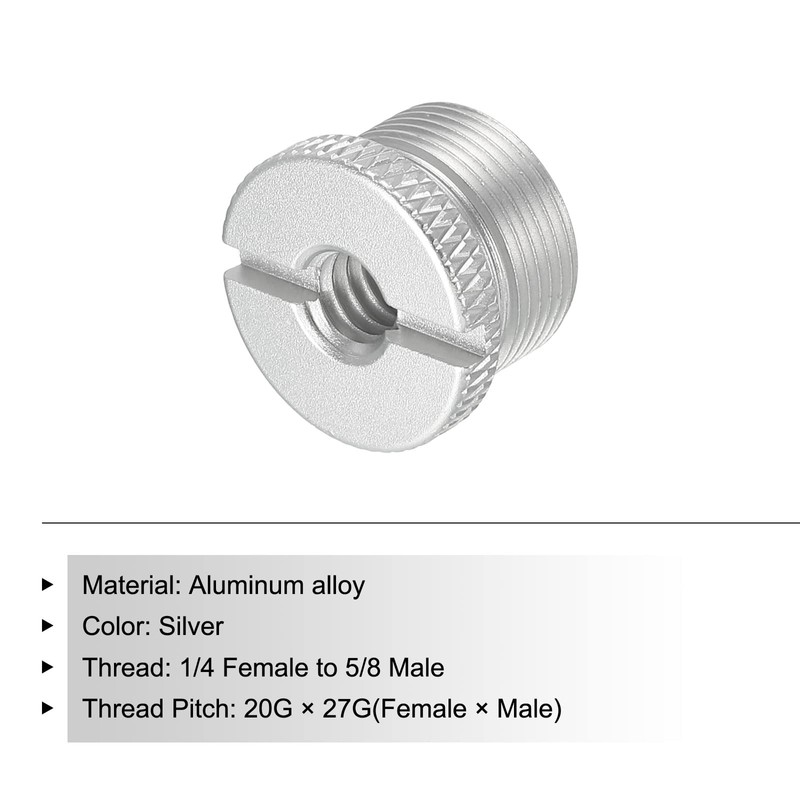 uxcell Microphone Stand Adapter 1/4 Female to 5/8 Male Aluminum Alloy Microphone Screw Adapter for Microphone Tripod Stand Silver