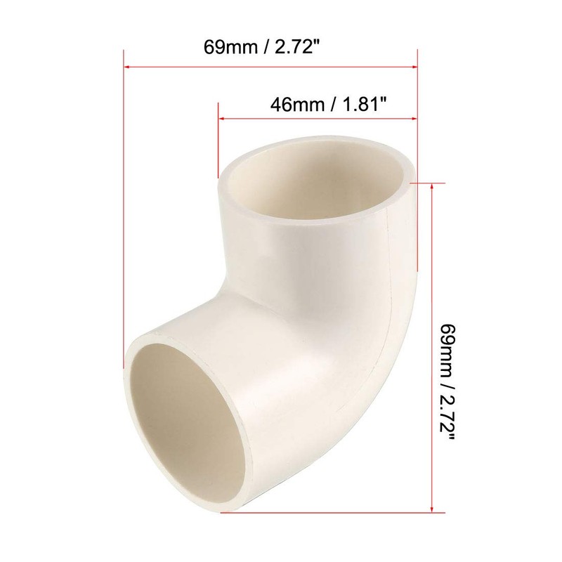 2.This 90-degree elbow fitting, or "ell," connects two pipes at a 90-degree angle to change the direction of flow between pipes. It has female slip openings for sliding over the ends of male unthreaded pipes. The slip ends connect to pipes with a smooth bore for enhanced flow.