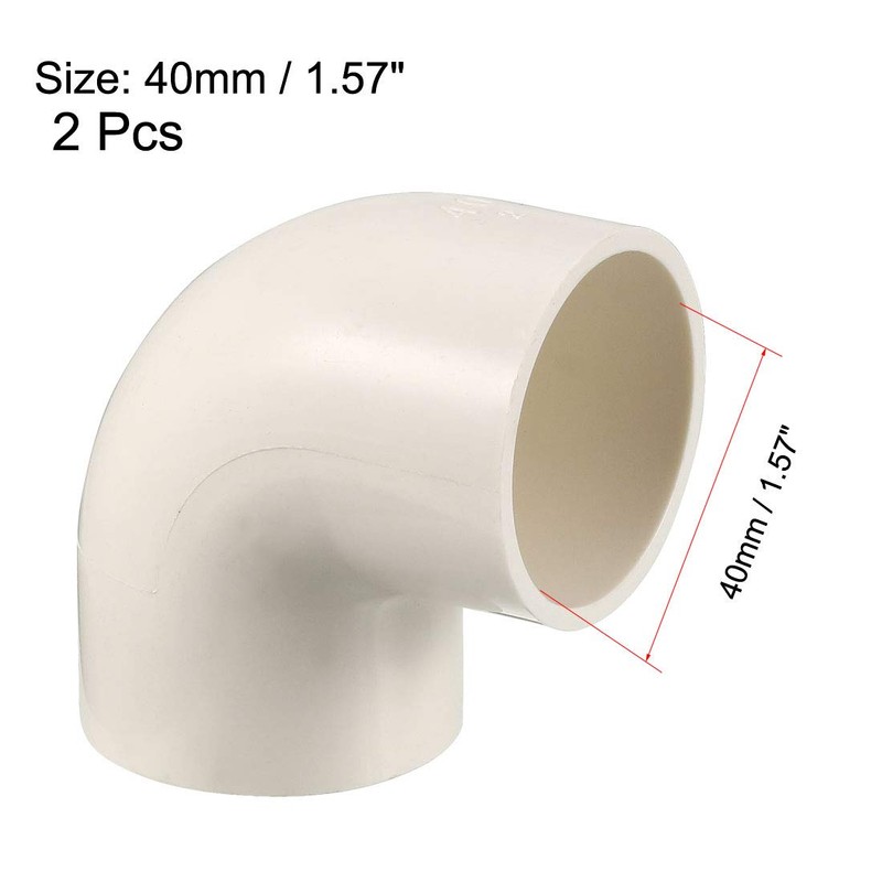 uxcell PVC Pipe Fitting 40mm Slip Socket 90 Degree Elbow Coupling Connector White 2Pcs