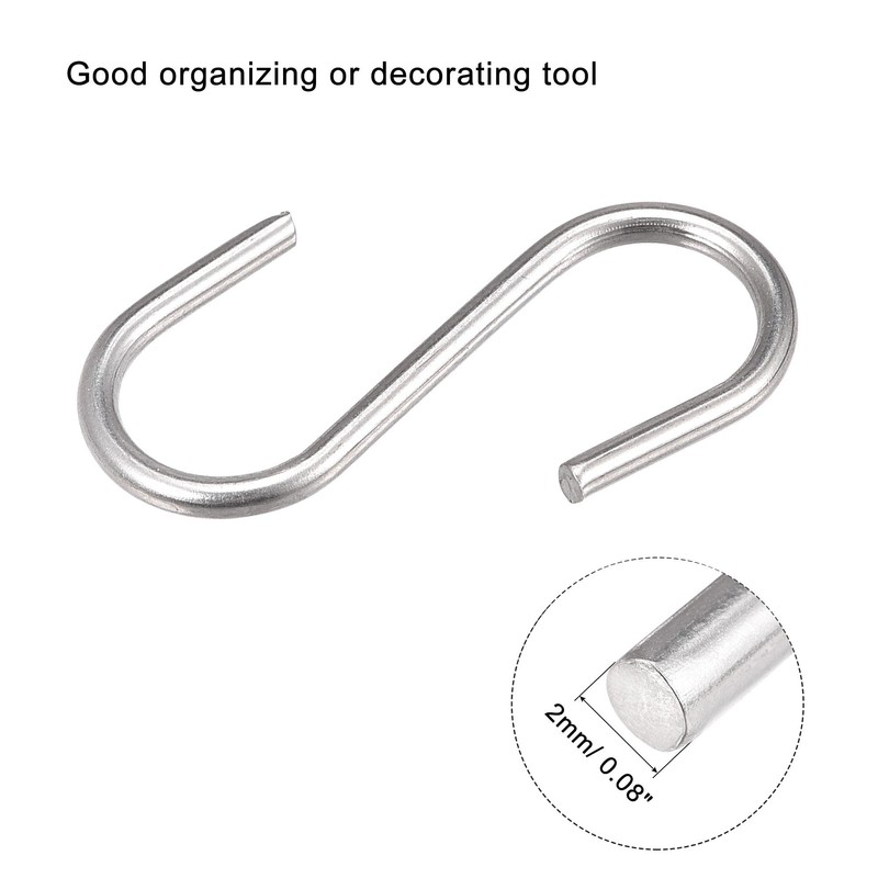 - [What You Get] - Package comes with 40pcs of S shape hanging hooks in 30mm/ 1.18inch length, 8mm/ 0.31inch Opening end diameter, 2mm/ 0.08inch Thickness