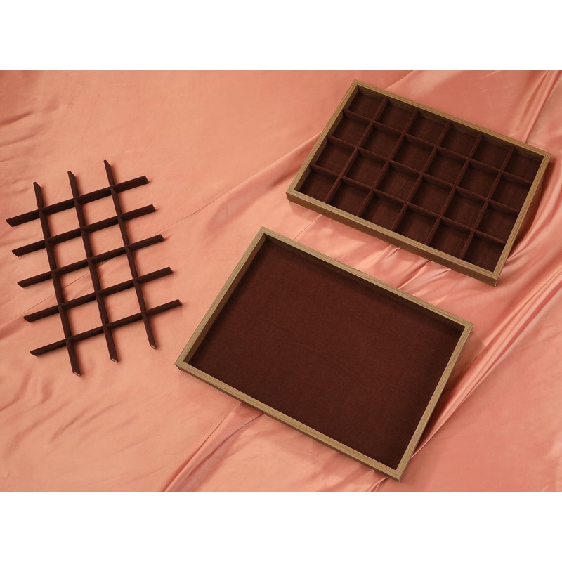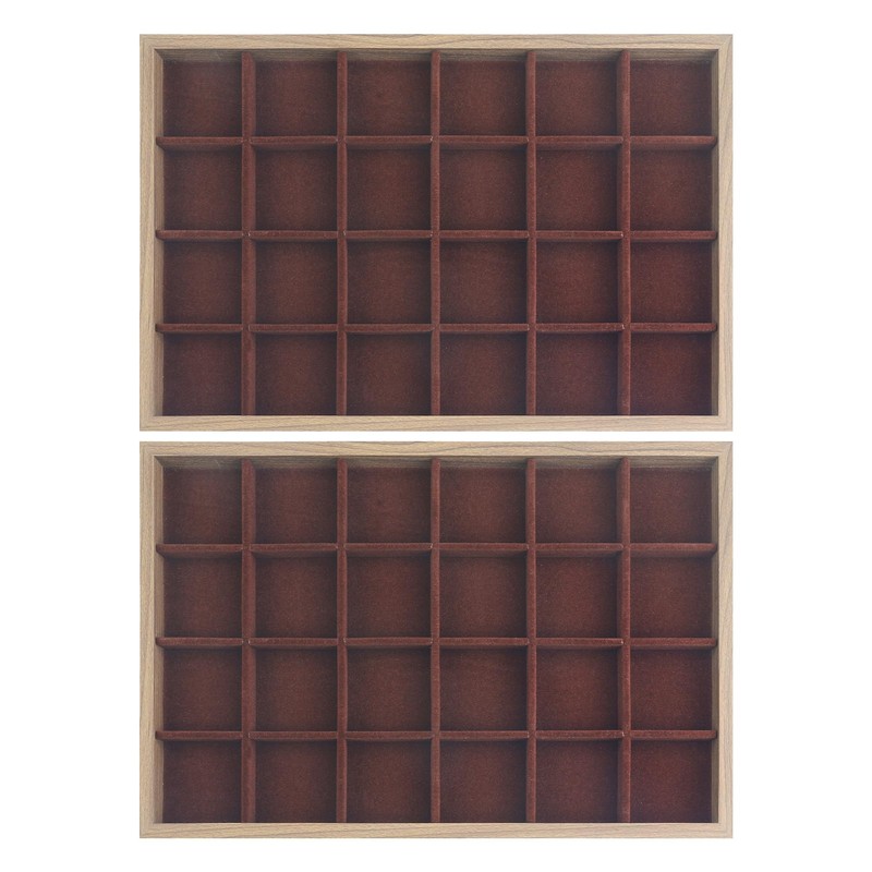uxcell Set of 2 Stackable Velvet Jewelry Organizer Trays with Removable Dividers for Drawers, Jewelry Organizer Drawer Display Storage 24 Grid Tray Brown